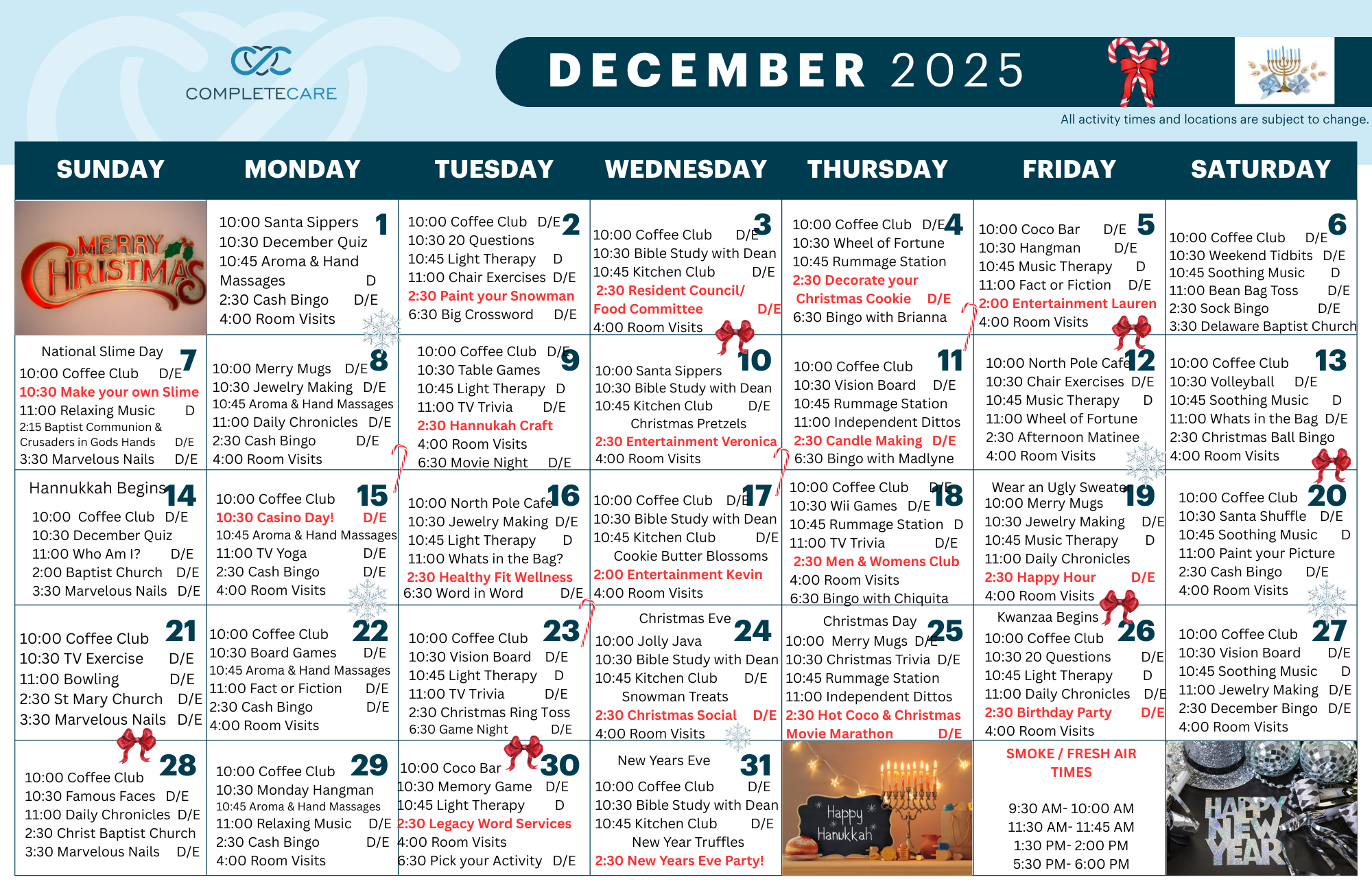 Activities Calendar